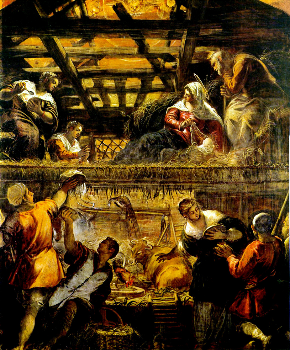 Painted around 1570 and located in the chapter hall of the Scuola Grande di San Rocco in Venice, Italy, the “Adoration of the Shepherds” by Tintoretto is a moving depiction of Christmas night. Set in a ruined stable, the Holy Family occupies the upper floor as the shepherds arrive to the scene in the lower right. The entire scene is washed in a warm, diffused golden light. Buona visione!