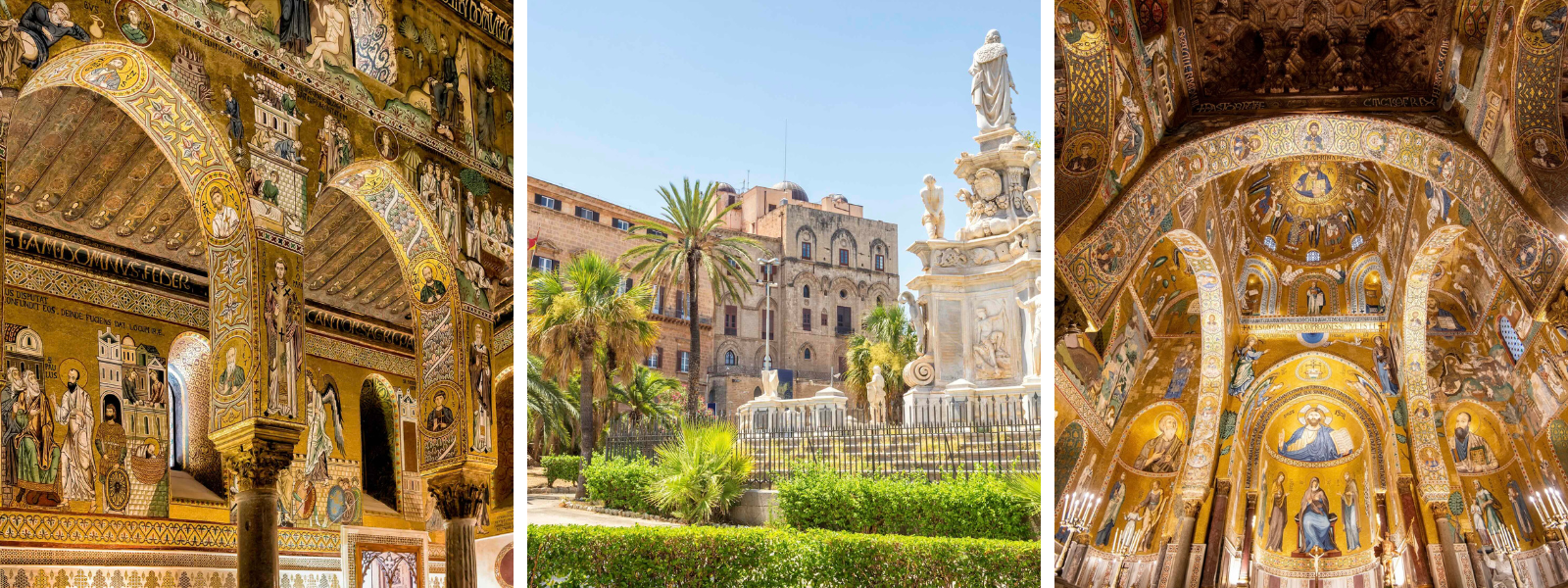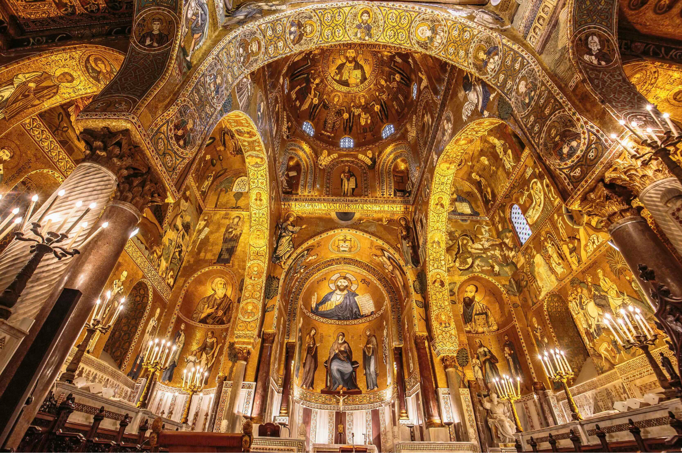 The Palatine Chapel is the sumptuous royal chapel of the Norman Palace in Palermo, Sicily. It was commissioned by the Norman King of Sicily, Roger II, in 1132, and combines Byzantine, Norman and Islamic architectural styles. 12th-century glittering mosaics adorn most of the walls and central dome, while a breathtaking muqarnas ceiling covers the nave. Buona visita!