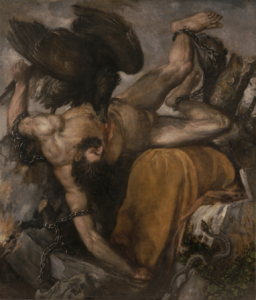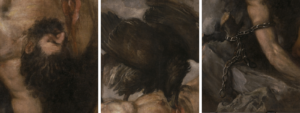 Painted by Titian in 1548 for the sister of Charles V, Mary of Hungary, “Tityus” depicts the giant Tityus who was condemned by Zeus to have his liver perpetually eaten by vultures. The same theme was also treated by Michelangelo in a drawing now located in the Royal Collection in London. Titian’s painting is instead located in the Prado Museum in Madrid. Buona visione!