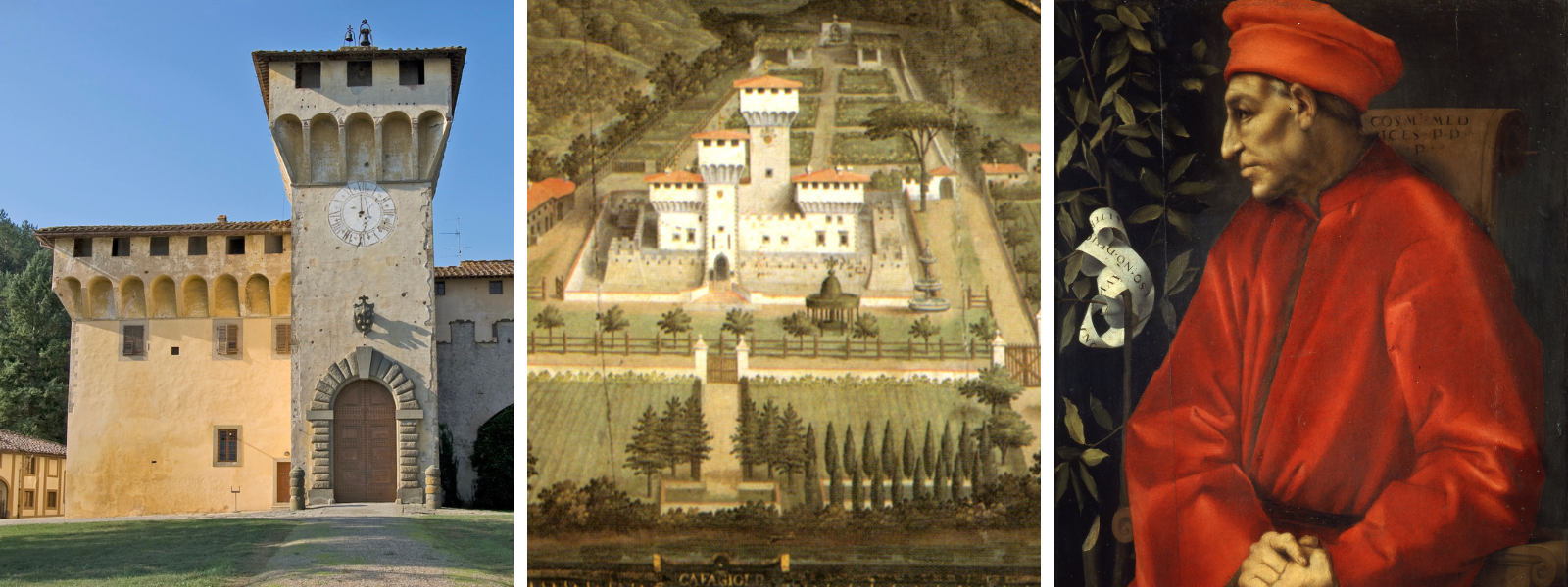 The Medici Villa at Cafaggiolo is located near the town of Barberino di Mugello north of Florence, Italy. It is one of the oldest estates owned by the Medici family. The current structure was designed by Michelozzo in 1452 by commission of Cosimo “the Elder” de’ Medici to render the original fortified medieval building into a more comfortable hunting retreat. The villa hosted numerous family celebrations and intellectual gatherings during the reign of the 15th-century “Republican Medici.” Buona visita!