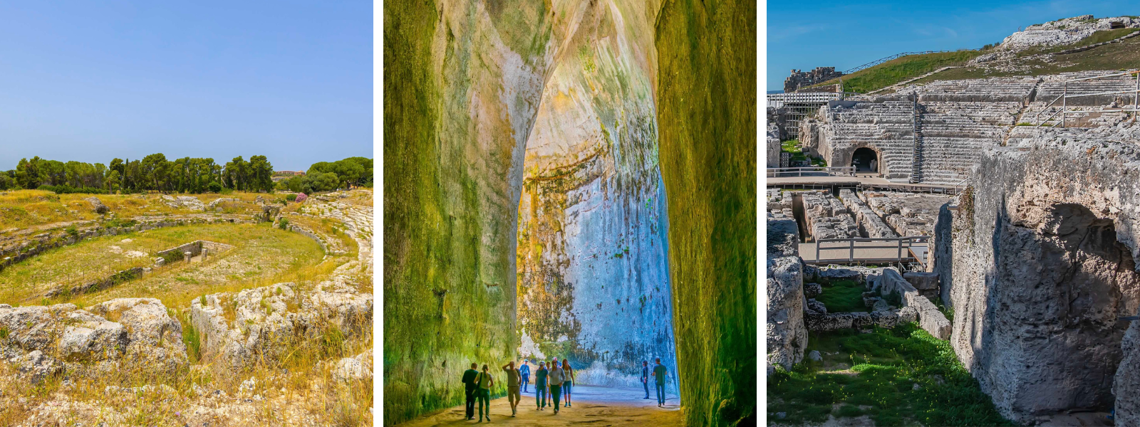 Located at the entrance of the modern town of Siracusa in Sicily, the Neapolis archeological park contains an array of archeological wonders. It is home to a 5th-century Greek theater, a 2nd-century Roman amphitheater, ancient stone quarries, and the famous “Ear of Dionysius” – a deep cavern with spectacular acoustics named by Caravaggio after the ancient tyrant of Siracusa. Buona visita!