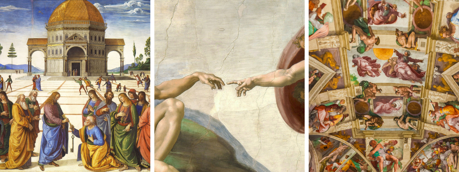 Built between 1473 and 1481 for Pope Sixtus IV (from whom the chapel takes its name), the Sistine Chapel is best known today for Michelangelo’s famous 16th-century ceiling and “Last Judgment” frescoes. There are also side wall frescoes in the chapel by Perugino, Botticelli, Ghirlandaio, Rosselli, and Signorelli. Beyond its artistic importance, the Sistine Chapel also serves as the site of papal conclaves when new popes are elected. Buona visita!