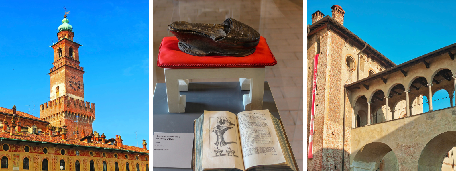 Located about an hour southwest of Milan, the town of Vigevano is best known today for its shoe production. Yet, during the Renaissance, the Sforza dukes transformed an old hunting lodge in Vigevano into a stronghold known as the Visconti-Sforza Castle, which was designed by Bramante and Leonardo da Vinci. The front of the castle has a large tower that looks over an anterior piazza much the same way the tower does in the homonymous Sforza Castle in Milan. There is also a Ducal Palace within the castle that overlooks a charming, arcaded piazza, at one end of which you can find Vigevano Cathedral. Buona visita!