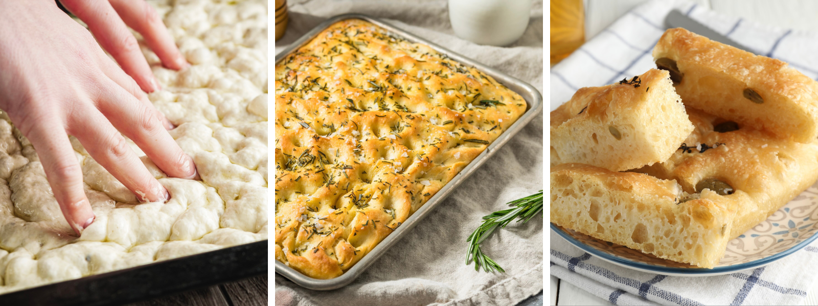Focaccia is a type of salted Italian flatbread with a dimpled texture and drizzled with fresh EVOO and rock salt. It is usually soft and chewy on the inside and crispy on the outside. Focaccia can be used for making sandwiches or pannini, as a substitute for bread, or simply enjoyed on its own. Buon appetito!