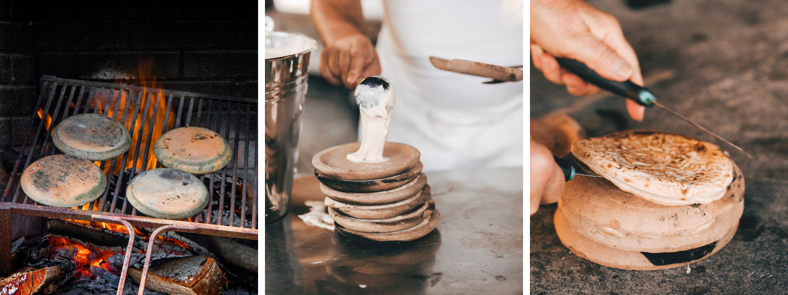 Panigacci is a type of round, unleavened and crispy bread typical of the Italian regions of Liguria and Tuscany. Made of flour, water, and salt, they are cooked on a terracotta dish over a live flame or wood oven. Buon appetito!