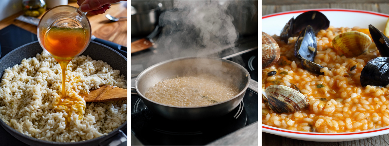 A typical Italian seafood dish popular throughout Italy, Risotto di Mare is usually prepared with Carnaroli or Arborio rice and fish broth, white wine, and fresh seafood such as squid, mussels, shrimp, and clams. Serve with fresh parsley and lemon. Buon appetito!