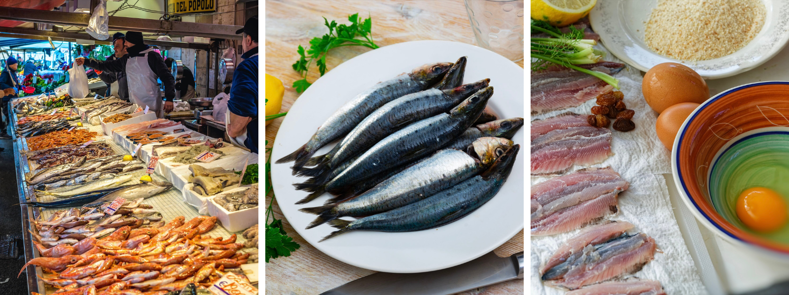 Named after a prized species of bird once consumed by Sicilian aristocracy – “beccafico” – which they resemble, sarde a beccafico are butterflied rolled sardines stuffed with a mix of breadcrumbs, pine nuts, raisins and herbs. The rolls are then baked between bay leaves and/or orange slices. Buon appetito!