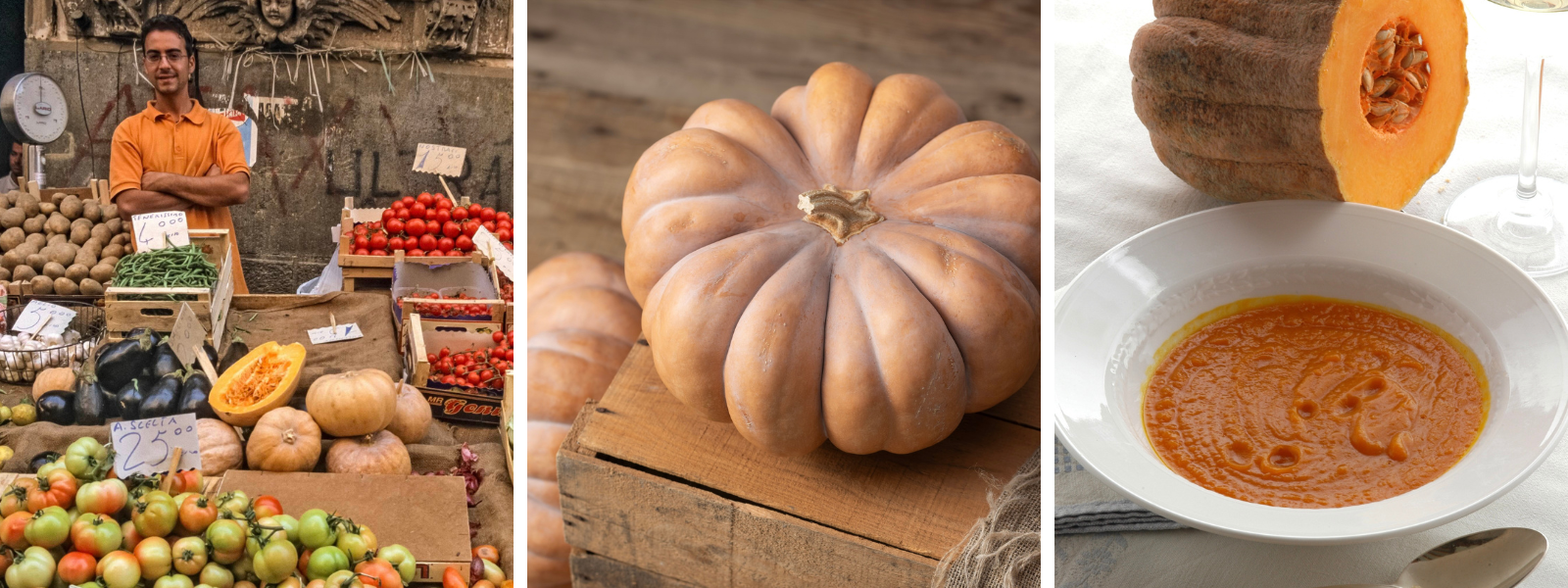 Zucca e patate vellutate (Cream of Pumpkin and Potato Soup) is the perfect way to warm up a brisk fall day. Simply sauté pumpkin and potato cubes with a diced onion in EVOO and gradually cover with vegetable broth. Salt and pepper to taste and then puree. Serve with croutons. Buon appetito!